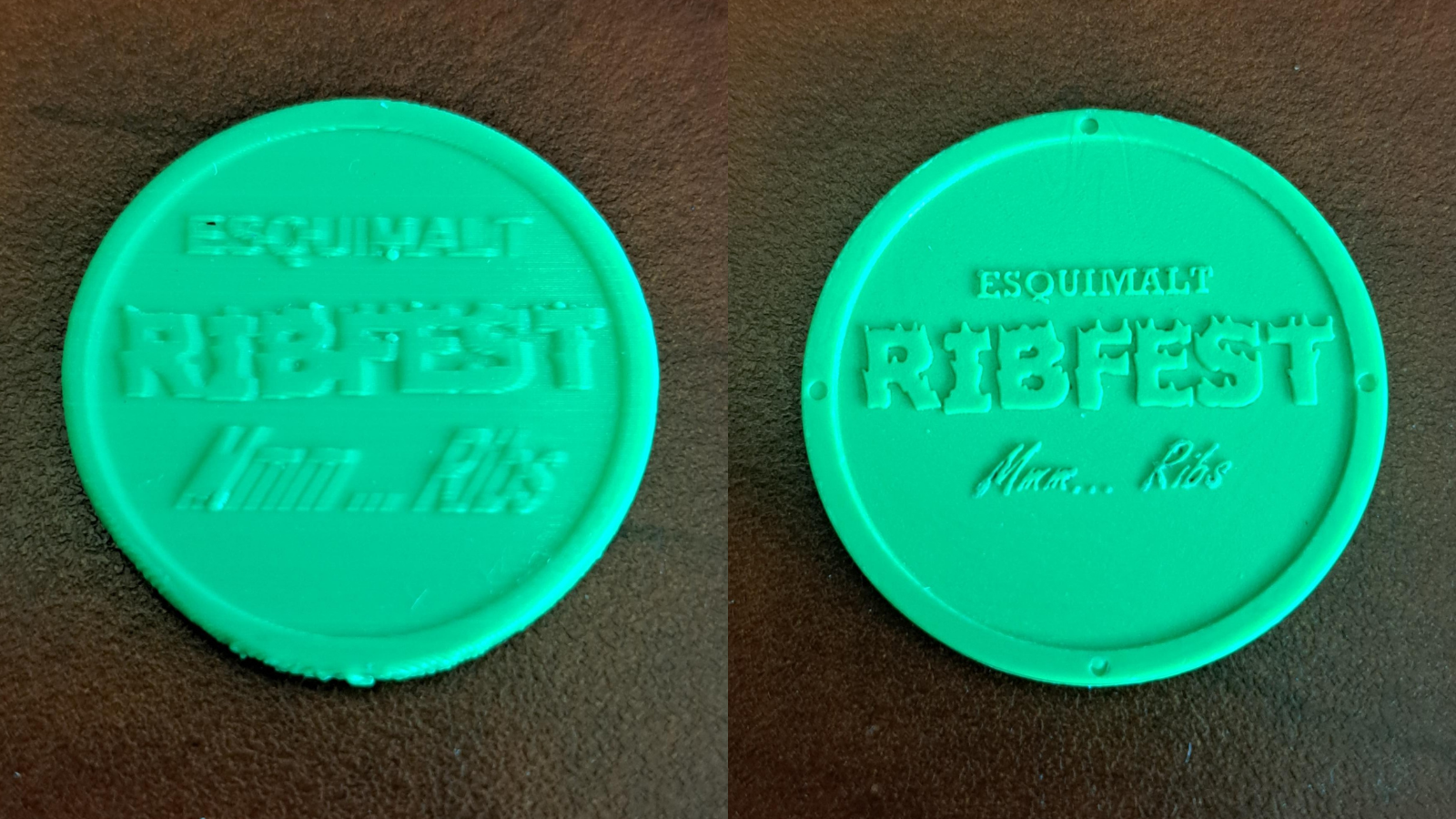 Counterfeit token (left) compared to a genuine Ribfest token (right).