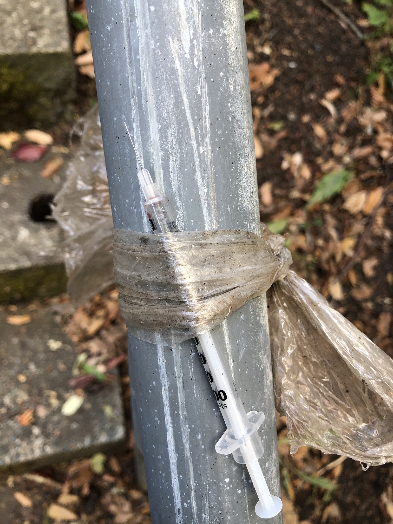 Public Warning Issued After Used, Uncapped Needle Found Secured To Railing In Beacon Hill Park