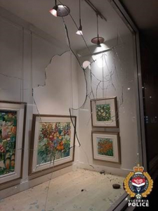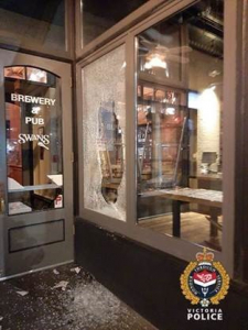 The following day, the same man was suspected of causing damage to several Victoria businesses. Officers identified 14 locations that the suspect damaged.