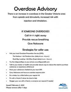 The Public Affairs (PA) team shared harm prevention messaging throughout the quarter, particularly in relation to Island Health toxic drug advisories.