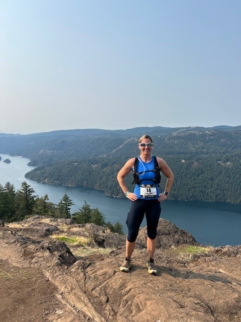 Sgt. Bader at the 2024 Finlayson Arm Trail Race, she competed in a 28 km trail run