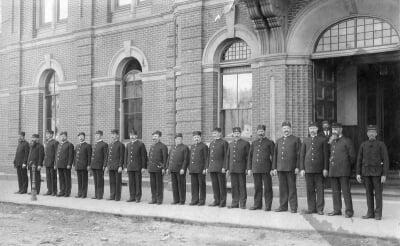 By 1910, the department consisted of 54 men, including officers, gaolers, and desk clerks. Officers on the beat each covered an area of 1.87 square metres.
